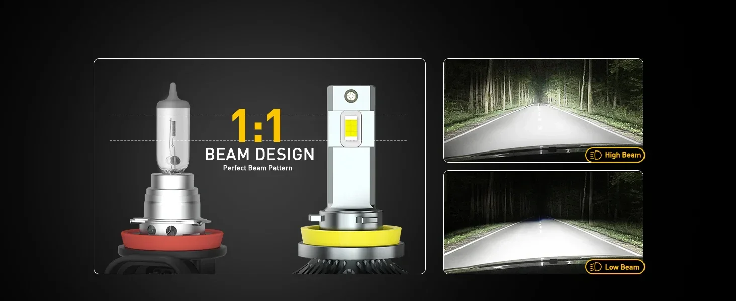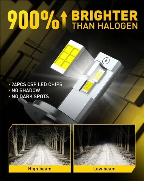 Featuring advanced CPS LED chips, each bulb is equipped with 6 chips, delivering an impressive output of up to 12,000 lumens per bulb (24,000 lumens per pair). The 6500K cool white light far surpasses dull factory halogen bulbs, effortlessly illuminating your path ahead. No matter the conditions, you can drive confidently, ensuring your safety while enjoying every thrilling moment on the road.